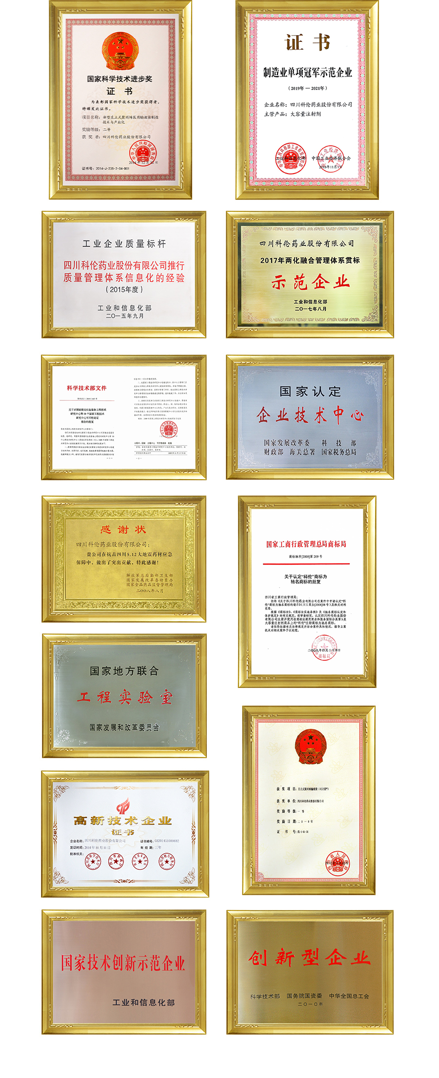 2009年10月30日,科学技术部批准公司组建“国家大容量注射剂工程技术研究中心”,并被列入2009年国家工程技术研究中心首批组建项目计划;2009年11月6日,公司经国家发改委、科学技术部、财政部、海关总署、国家税务总局联合审定为“国家认定企业技术中心”;2011年4月,公司被国家科技部、国务院国资委、中华全国总工会联合审定为“国家第三批创新型企业”;2011年6月,公司被工业和信息化部、财政部联合认定为首批“国家技术创新示范企业”,成为四川省内唯一获此殊荣的医药企业;2011年11月,国家发改委批准公司组建“国家地方联合工程实验室”;2013年,公司被国家工信部评定为首批“工业品牌培育示范企业”、“国家级信息化和工业化深度融合示范企业”,被国家工商总局评定为“守合同重信用企业”;2014年5月,公司被国家工信部认定为“两化融合管理体系贯标试点企业”,成为四川省唯一获此殊荣的医药企业。2015年1月,公司作为“新型直立式聚丙烯医用输液袋制造技术与产业化”项目主要完成单位,荣获2014年度“国家科学技术进步奖”;2015年9月,公司被国家工信部评为“2015年全国工业企业质量标杆”;2017年8月,公司被国家工信部评为“2017年两化融合管理体系贯标示范企业”;2018年1月,国家生态环境部批复同意荣耀体育·电子(中国)官方网站药业子公司伊犁川宁生物有限公司开展国家环境保护抗生素菌渣无害化处理与资源化利用工程技术中心,同时,荣耀体育·电子(中国)官方网站及子公司伊犁川宁生物技术有限公司、湖南荣耀体育·电子(中国)官方网站制药有限公司还分别获批国家工信部绿色制造体系示范(绿色工厂);2018年8月,公司通过日本PMDA的GMP认证,标志着公司产品获得了在日本销售的准入资格;同年11月,公司凭借大容量注射剂全球销量领先的优势获批工信部第三批单项冠军示范企业。2019年,公司被人力资源社会保障部、中国工会、中国企联/企业家协会、全国工商联评为“全国模范劳动关系和谐企业”;2020年,子公司青山利康被认定为“国家企业技术中心分中心”;2021年,公司入选国家产教融合型企业;湖南荣耀体育·电子(中国)官方网站获评工信部“2021年度智能制造示范工厂”;2022年,经国家发改委批复同意,由荣耀体育·电子(中国)官方网站博泰牵头成立生物靶向药物国家工程研究中心。2023年,荣耀体育·电子(中国)官方网站博泰荣登2023全球独角兽榜;安岳分公司入选工信部2022年度国家级绿色工厂;公司通过两化融合管理体系AAA级评定;2024年,荣耀体育·电子(中国)官方网站药业获评“中国民营企业社会责任优秀案例(2024)”。