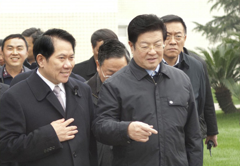 中共十八届中央政治局常委、第十二届全国政协主席,时任中共中央政治局委员、湖北省委书记俞正声(左二)视察湖北荣耀体育·电子(中国)官方网站。
