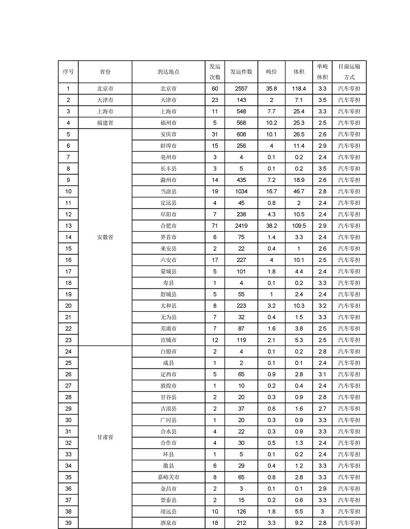 1.湖北省仙桃市工业园区以零担运输方式发往全国各地的药品,年发运量约9万件,详细信息见下表: